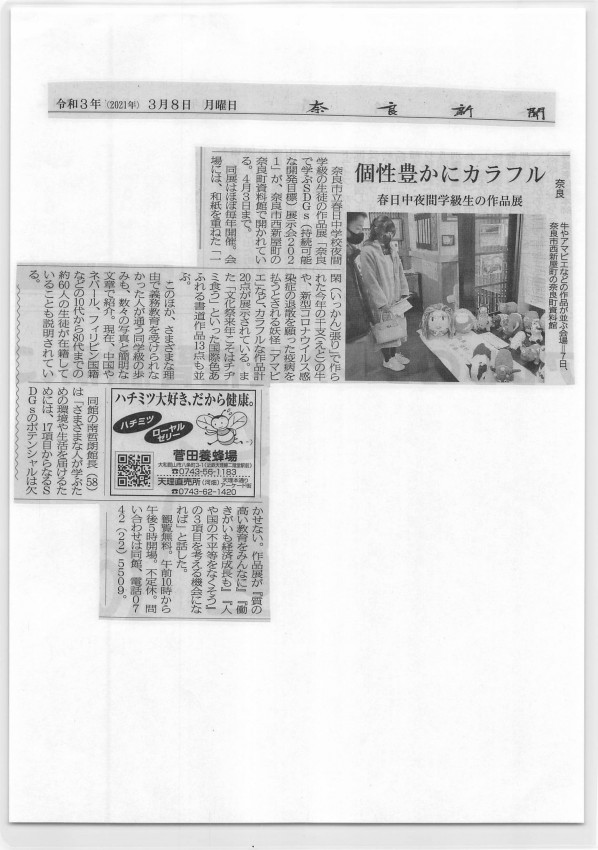 奈良町資料館で開催する、奈良市立春日夜間中学生の作品展示会