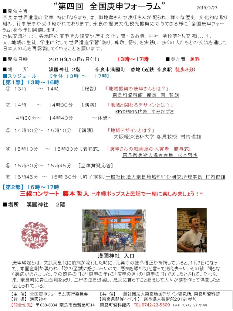“第四回 全国庚申フォーラム” の2部でコンサート開催します。