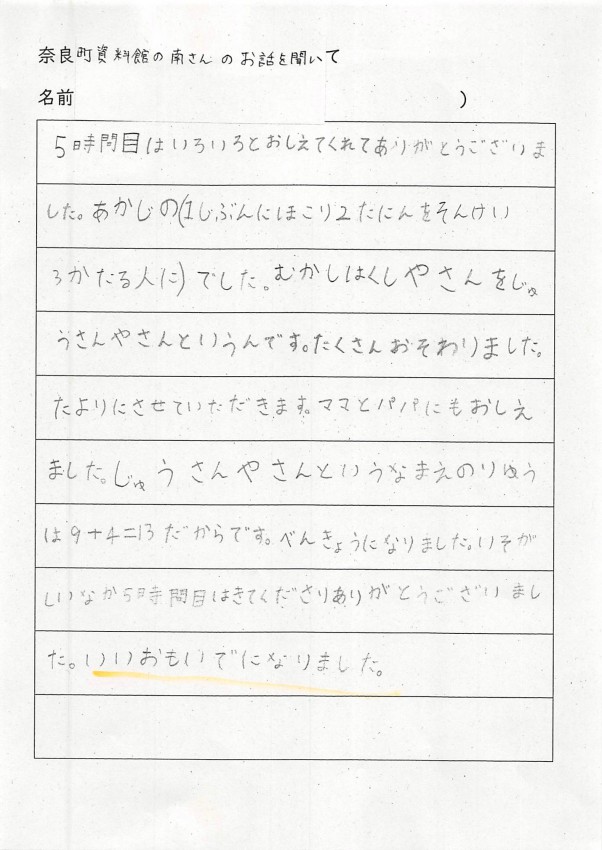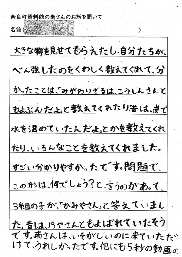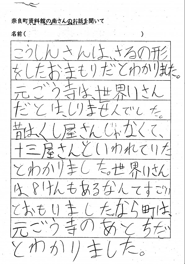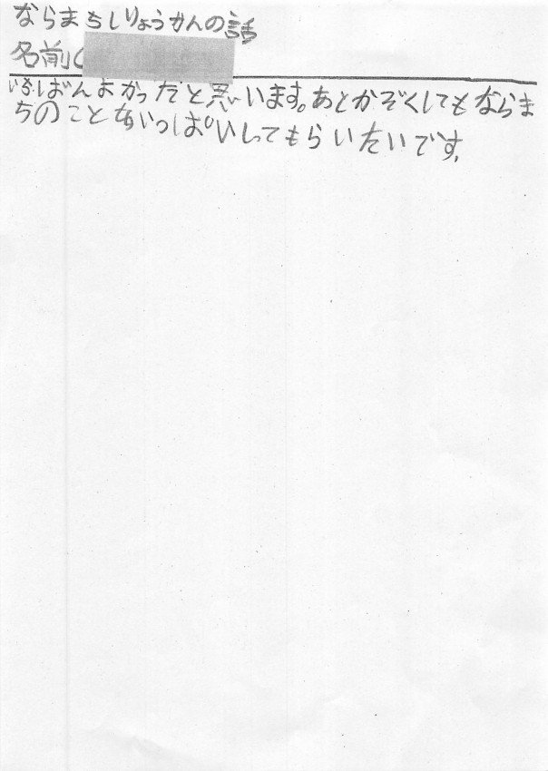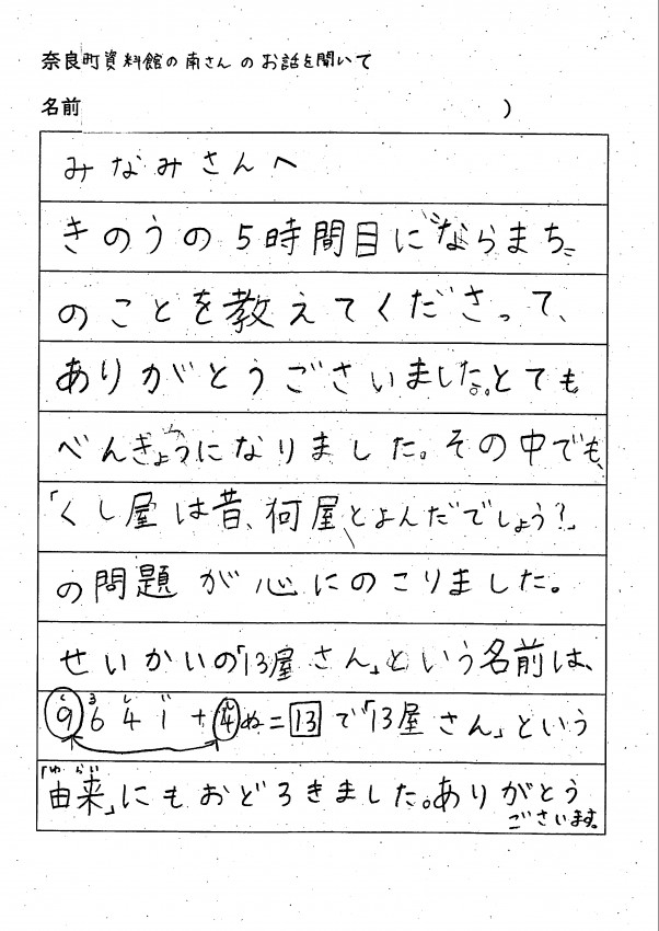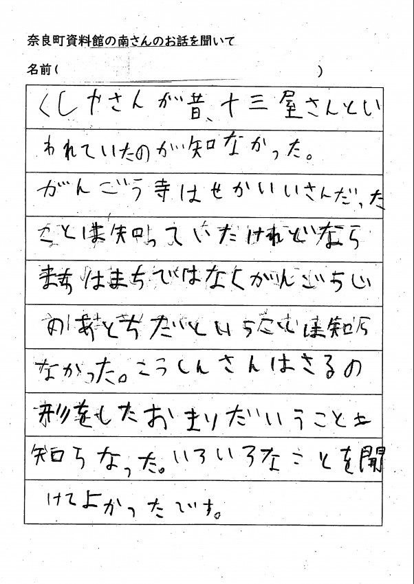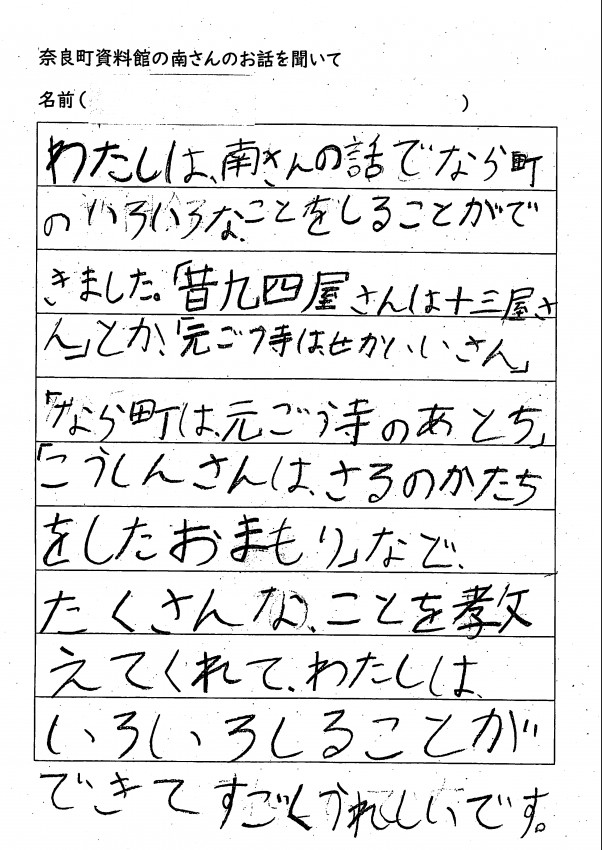 家へ帰ってお父さんお母さんへ沢山、ならまちのお話をしてくれたみたいです。