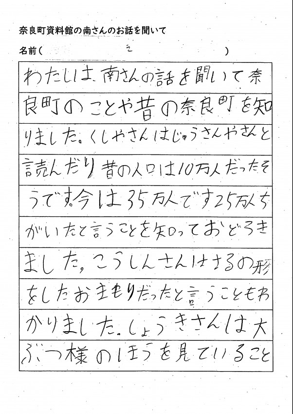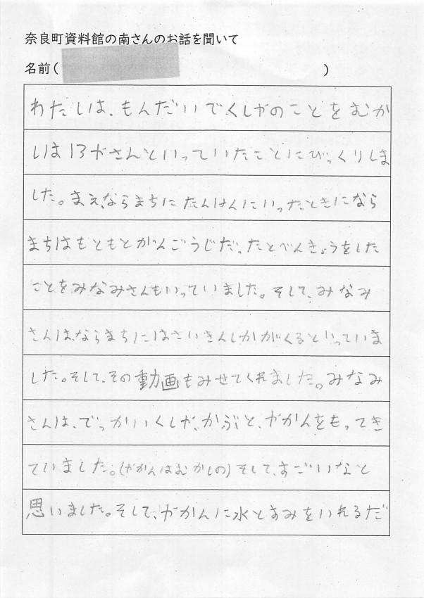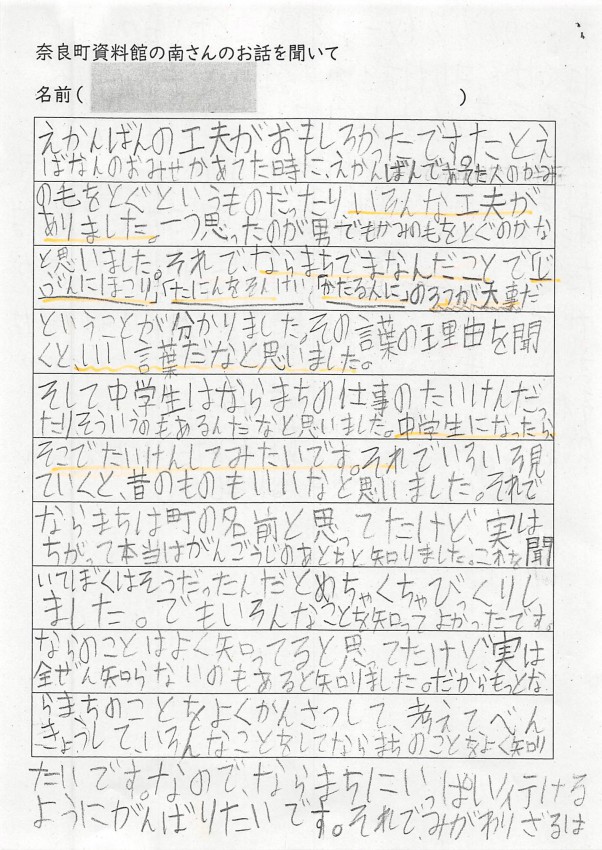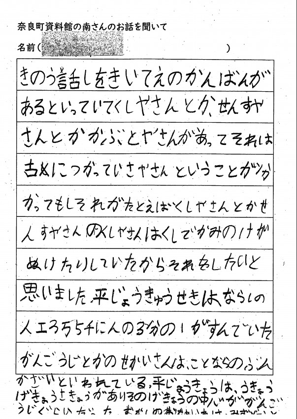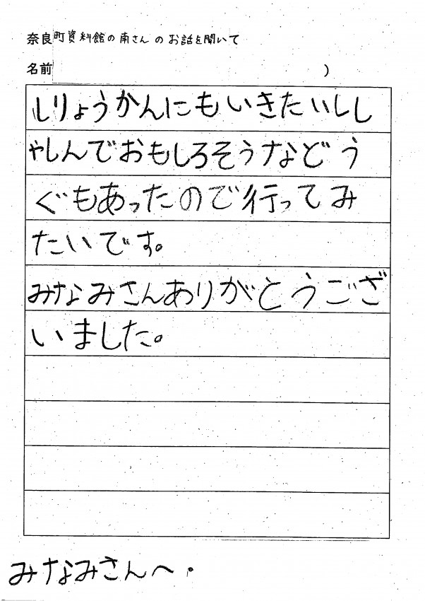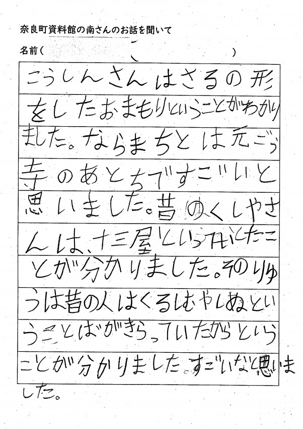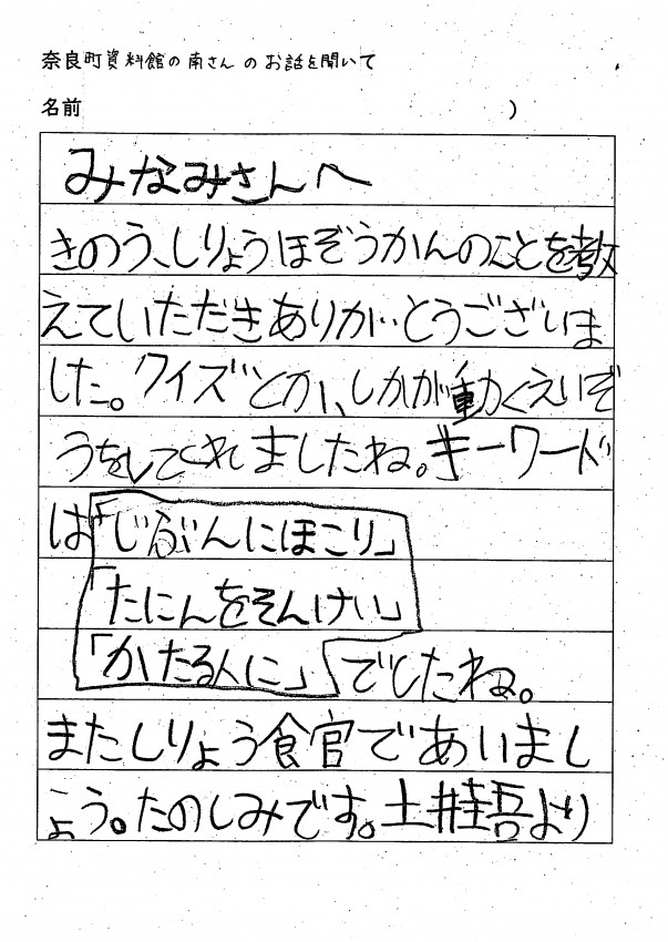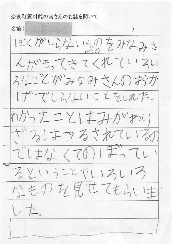 家へ帰ってお父さんお母さんへ沢山、ならまちのお話をしてくれたみたいです。