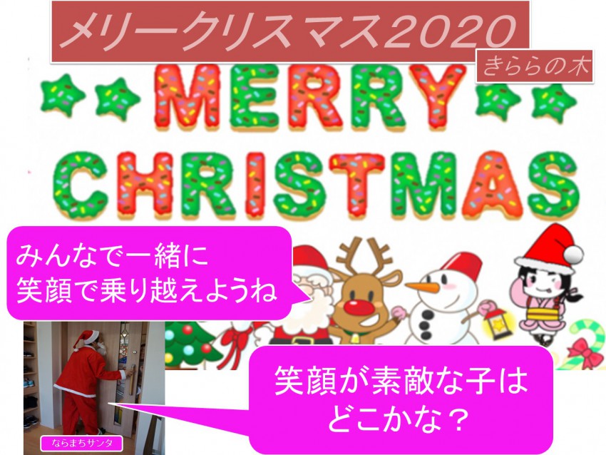 メリークリスマス サンタもソーシャルデスタンスでね! 今年のプレゼントは、お菓子と写メッセージで・・・ https://www.kiraranoki.or.jp/tanoshii_activity_1471.html https://www.kiraranoki.or.jp/iroha_activity_1473.html