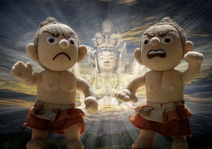 フェイクファーや羊毛フェルトを使って制作したぬいぐるみの仏像を展示します。そして、これらの作品を使った絵画のようなフォトアート作品も展示します。