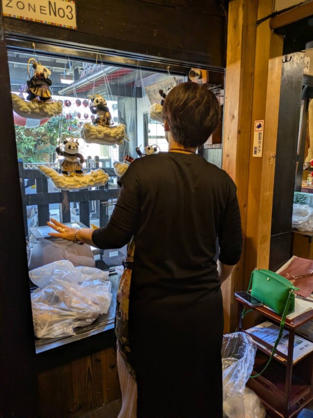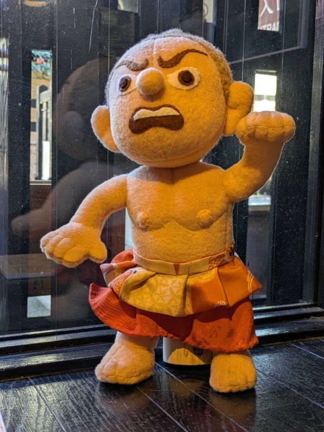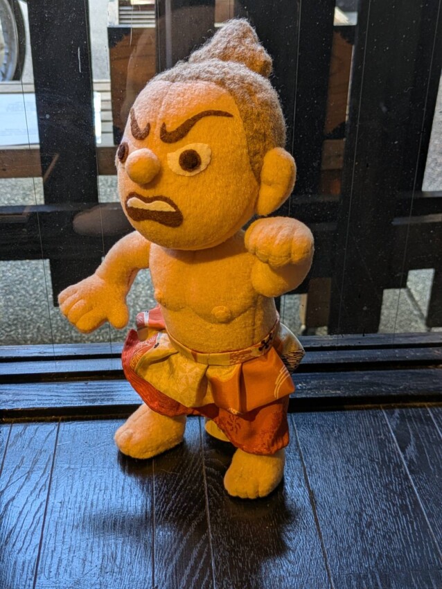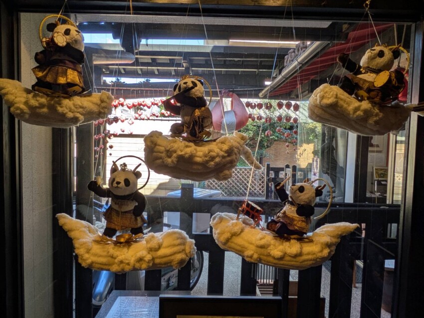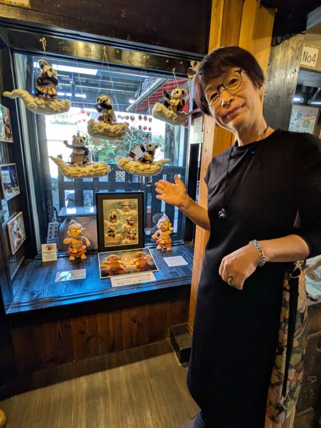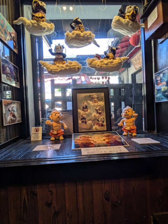 雲に乗って音楽を奏でる雲中供養パンダ菩薩を、フェイクファーを使って作りました。また、壺阪寺ご住職から依頼いただいた、現在修復中の金剛力士像のぬいぐるみも展示します。