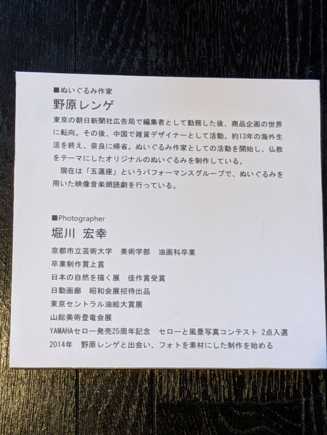 概要:ぬいぐるみ作家・野原レンゲとフォトアーティスト・堀川宏幸によるコラボ展です。