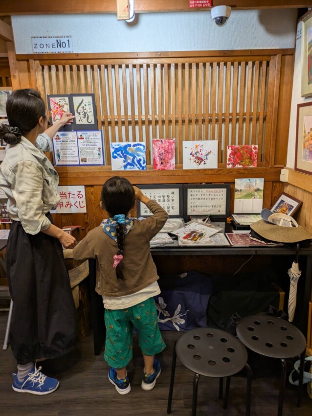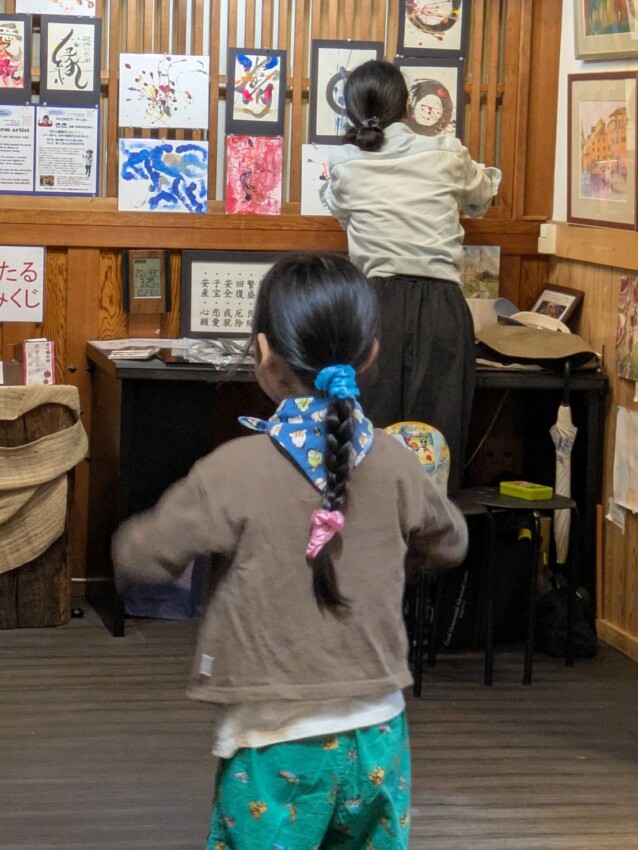 素敵な親子で展示会設営 「おつかれさまでした!」期間中にまた作品の入れ替えも楽しみにしてますー!